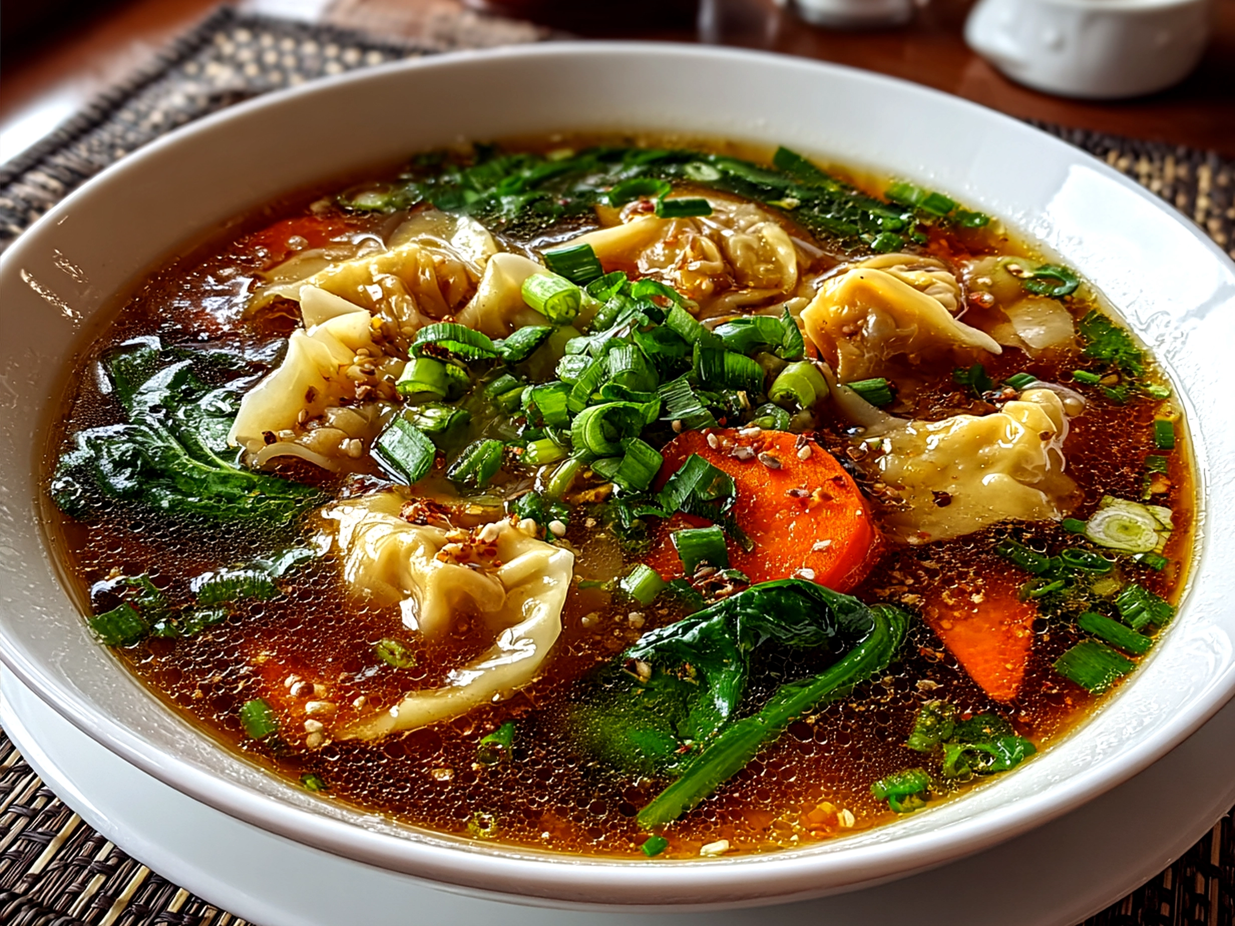 Asian Wonton Soup with Fragrant Broth and Fresh Vegetables