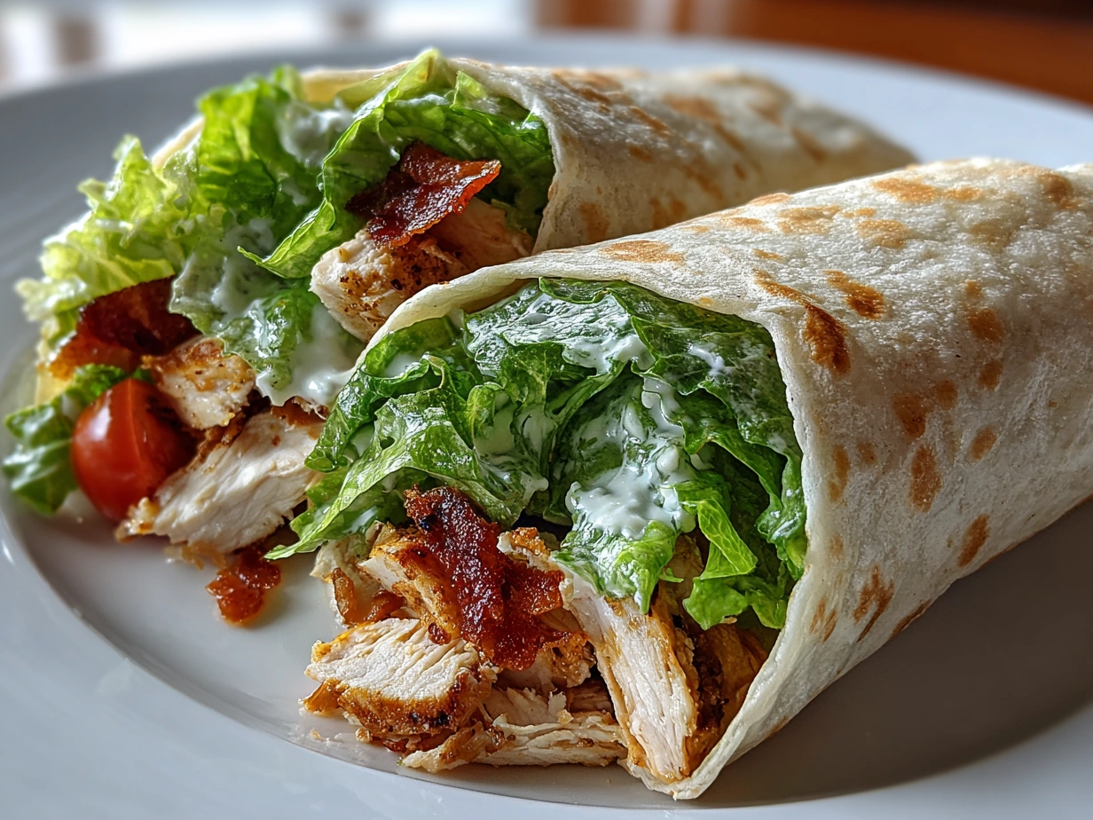 A delicious and easy-to-make Chicken Caesar Wrap featuring tender grilled chicken, crisp romaine lettuce, and creamy Caesar dressing wrapped in a soft tortilla. Perfect for a quick lunch or light dinner.