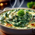This creamed spinach recipe holds a special place in my heart because it beautifully captures that sense of comfort and family tradition in every creamy bite. Over time, I’ve tried a few variations, like swapping in goat cheese for a tangy twist or adding a pinch of smoked paprika for a subtle warmth. My husband loves the classic rich spinach sauce, while my kids prefer it extra garlicky—go figure! My Creamed Spinach Pro Tips? First, always dry your spinach really well. Second, keep your heat low when adding cream to avoid separation. Third, don’t rush—give this creamy spinach recipe time to develop flavors slowly.