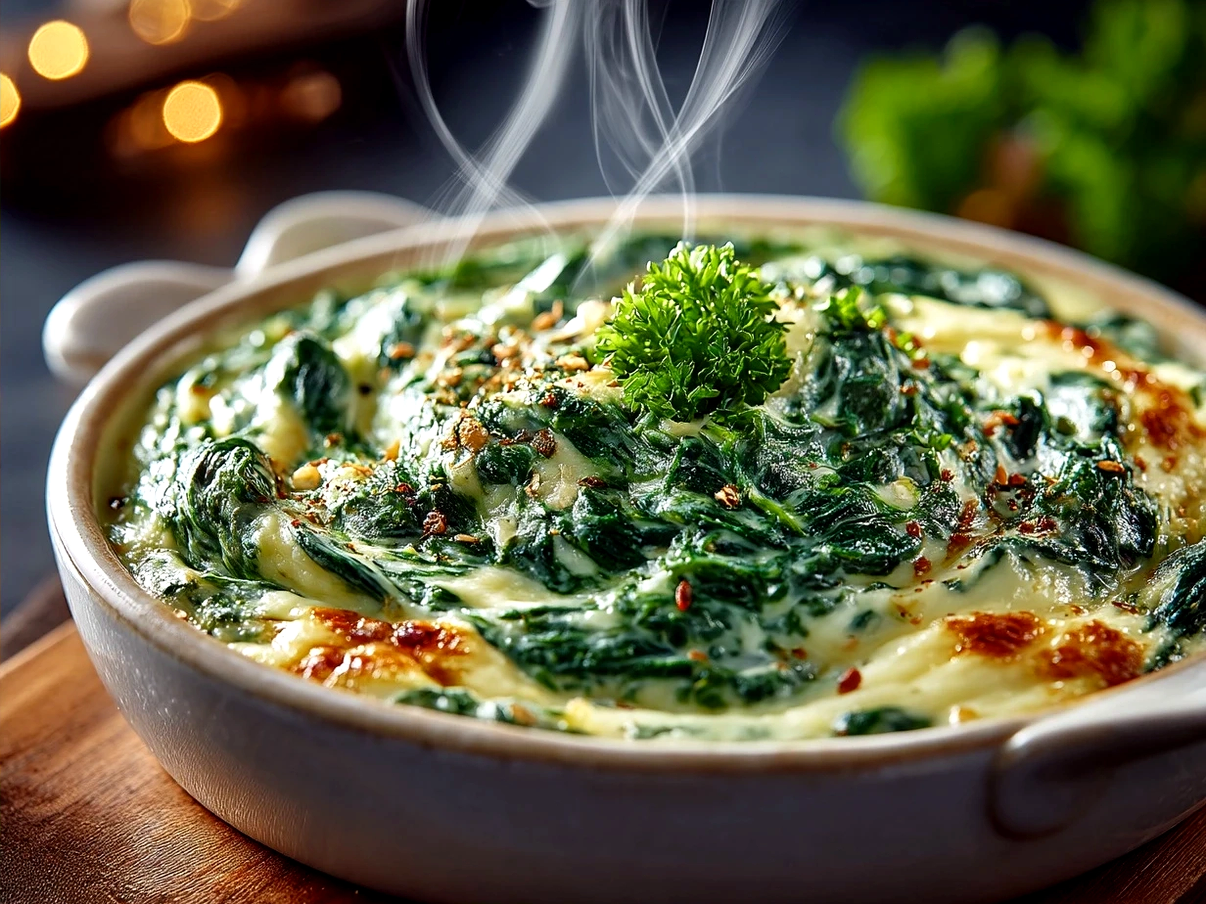 A: Garlic creamed spinach is all about balance. I start with 3 cloves and adjust to taste. Too much can overpower the spinach, so I recommend fresh garlic and adding it gradually.Q: Any tips to keep spinach from being bitter?
