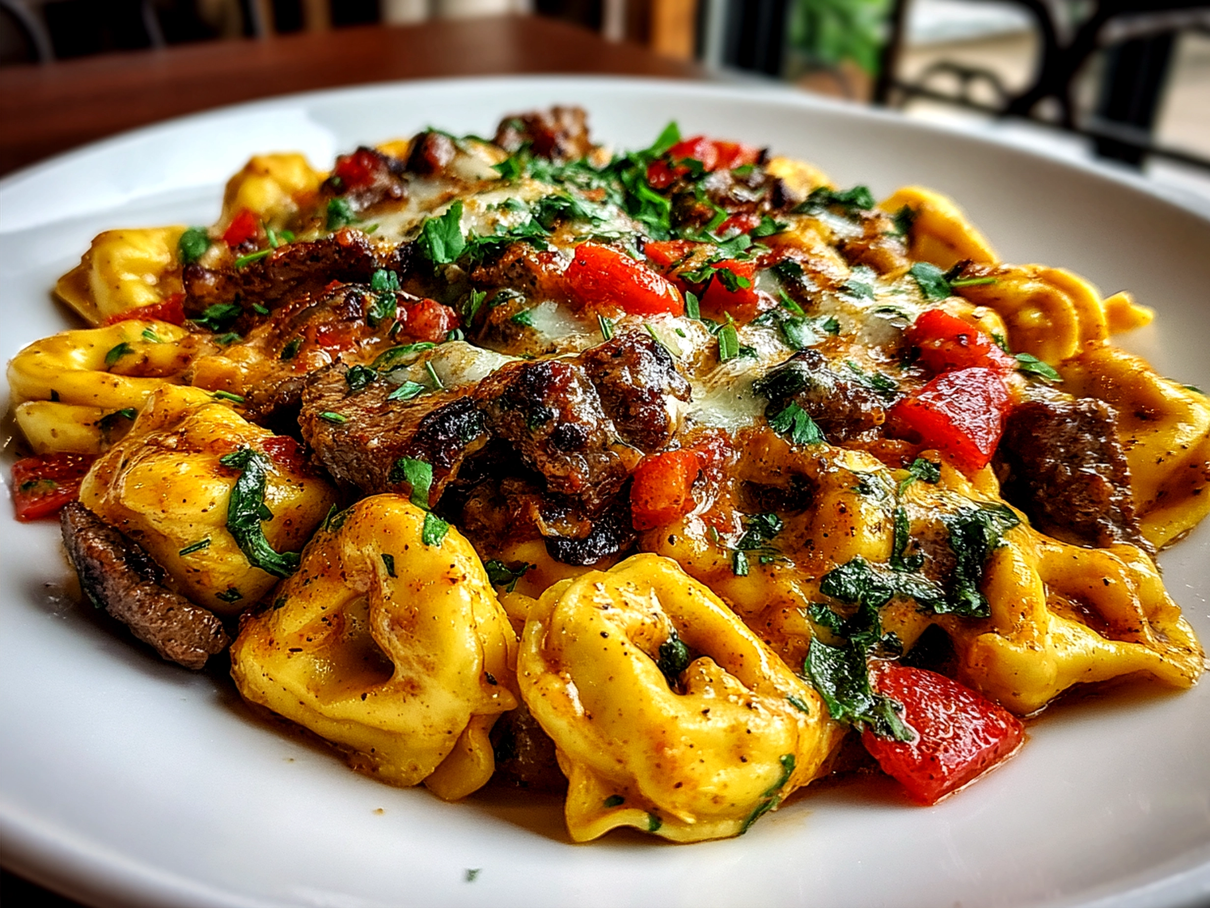 Presentation tip? Sprinkle extra shredded cheese on top right before serving and maybe a few torn fresh basil leaves for a pop of color. Sometimes I even ladle a spoonful into toasted hoagie rolls for little cheesesteak tortellini sliders—a total hit with the kids.