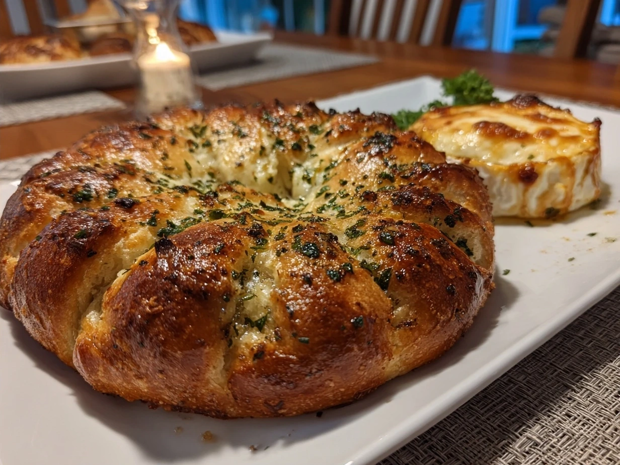 Delicious Garlic Bread Wreath with Baked Brie for Festive Appetizers