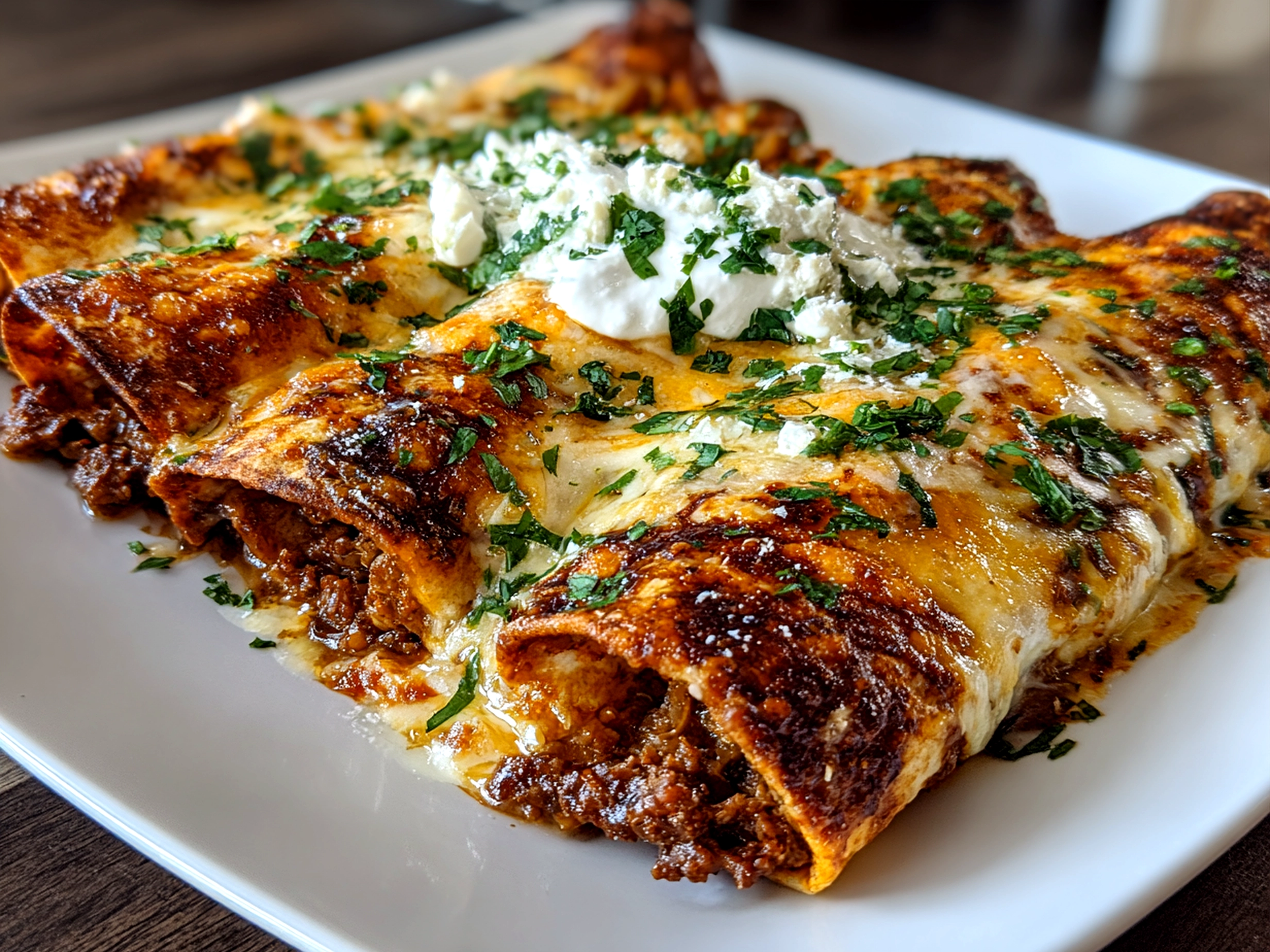 These Ground Beef Enchiladas are a flavorful and comforting Mexican-inspired dish featuring seasoned beef rolled in tortillas, topped with rich enchilada sauce and melted cheese.