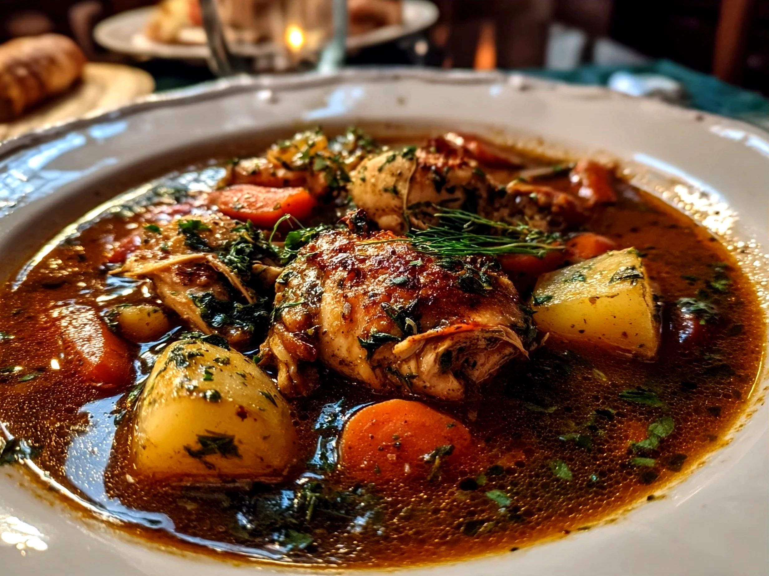 A hearty and comforting chicken stew packed with tender chicken, fresh vegetables, and rich flavors, perfect for a warming family meal.