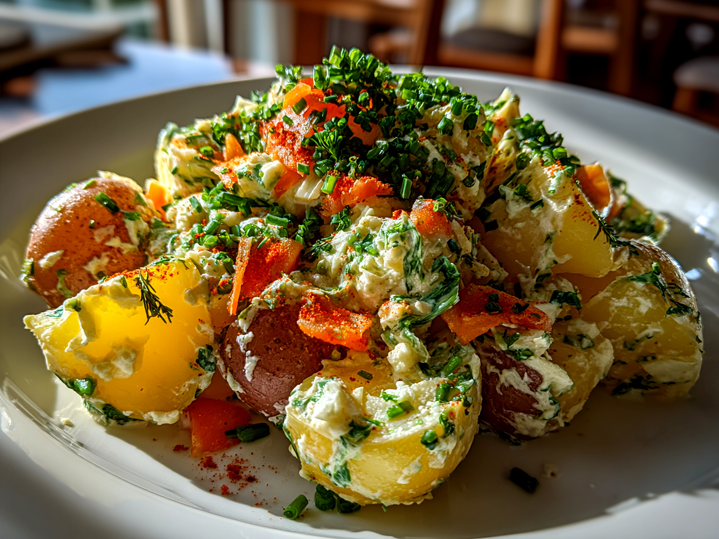 - Pour the dressing over the potato mixture and gently mix to combine.
