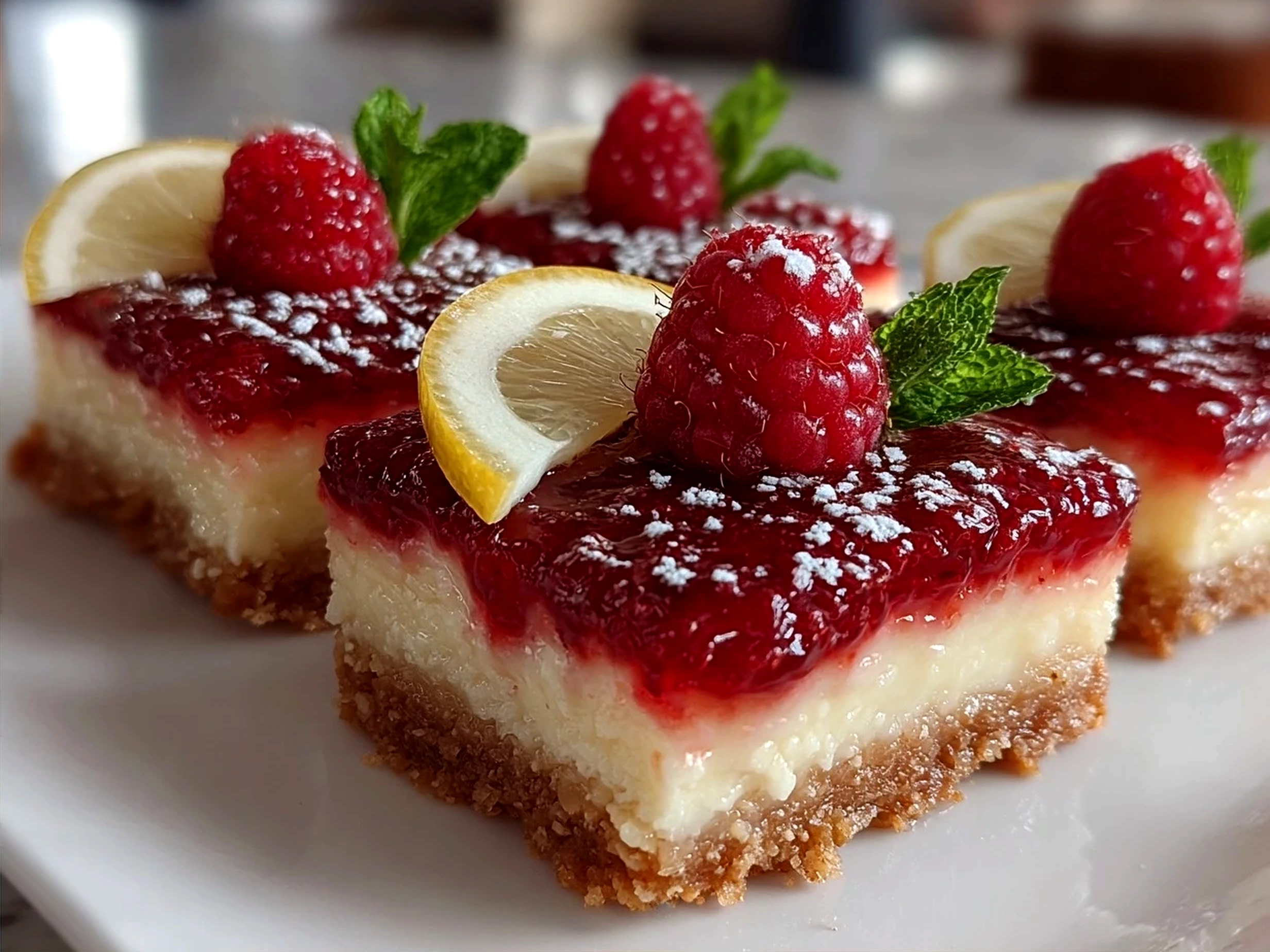 Delightfully tangy and sweet, these Lemon Raspberry Bars combine a buttery crust with a luscious lemon filling and fresh raspberries for a refreshing dessert.