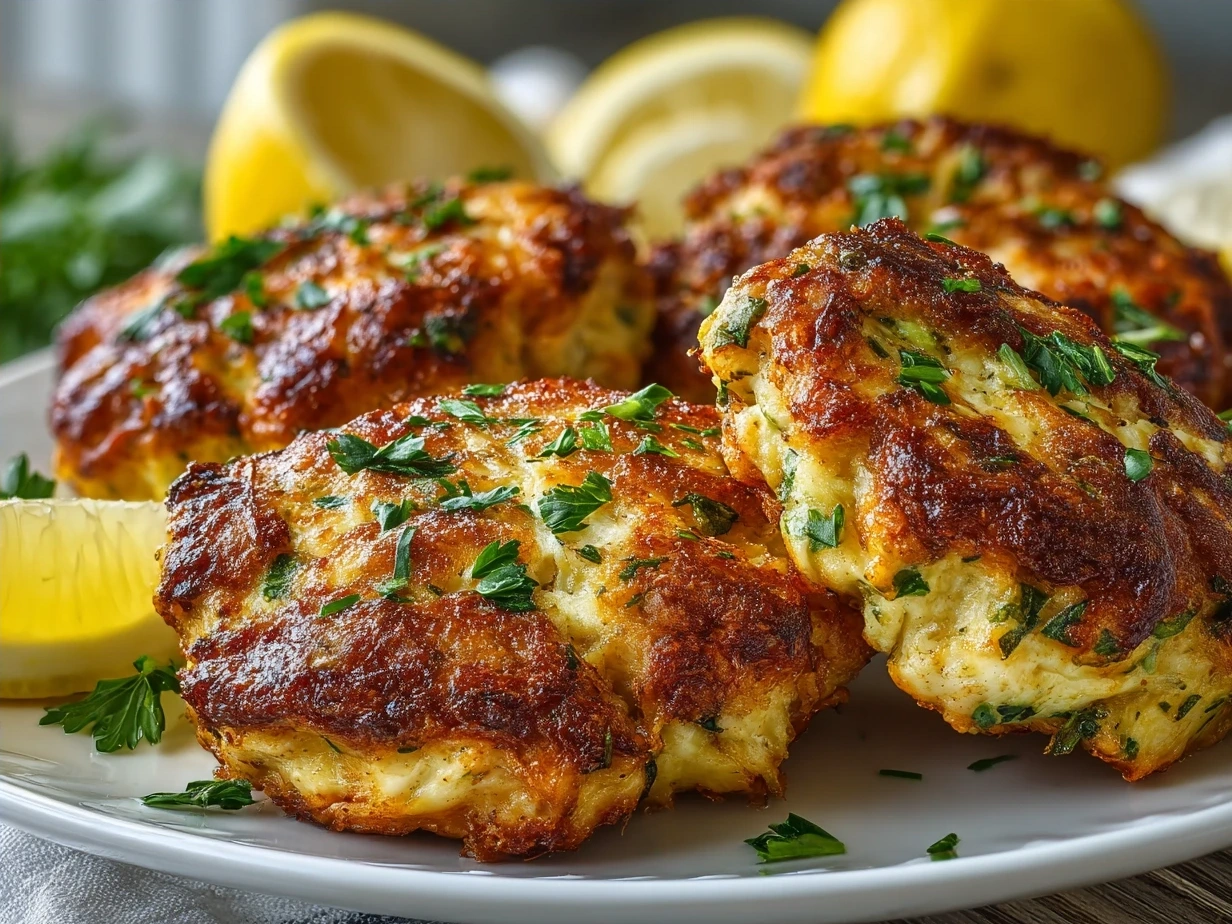 Classic Maryland Crab Cakes made with lump crab meat, seasoned with Old Bay and herbs, then pan-fried to golden perfection for a crispy exterior and tender, flavorful inside.