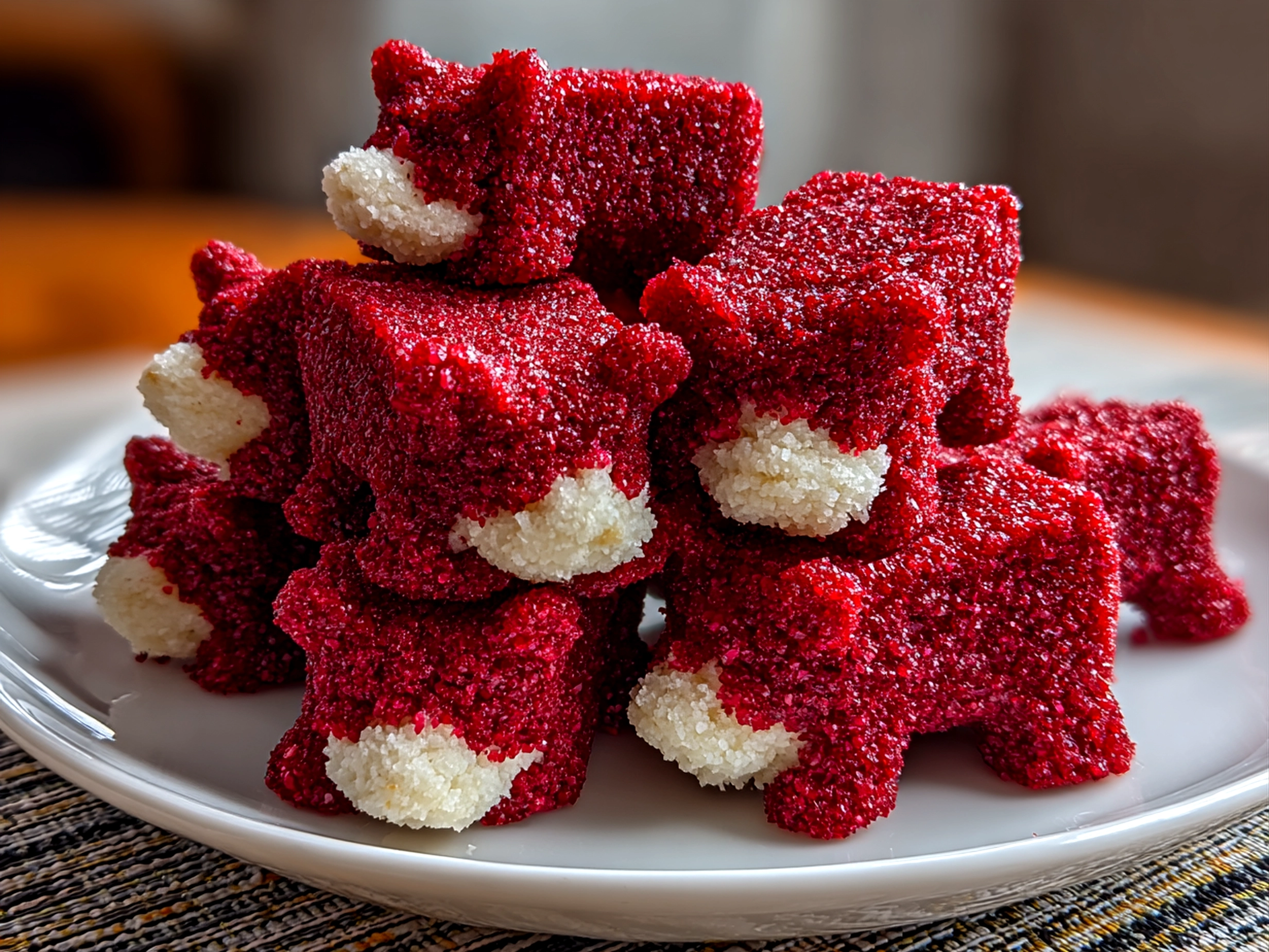 Presentation-wise, here’s a little secret from my cookies-loving cousins: sprinkle some edible glitter or finely chopped nuts around the bears on a platter to add sparkle and texture. It makes the cookies feel extra special and gift-ready. And if you find yourself with leftover Red Velvet Bear Cookies, we love crumbling them up and using them as toppings for ice cream or mixing into yogurt parfaits.