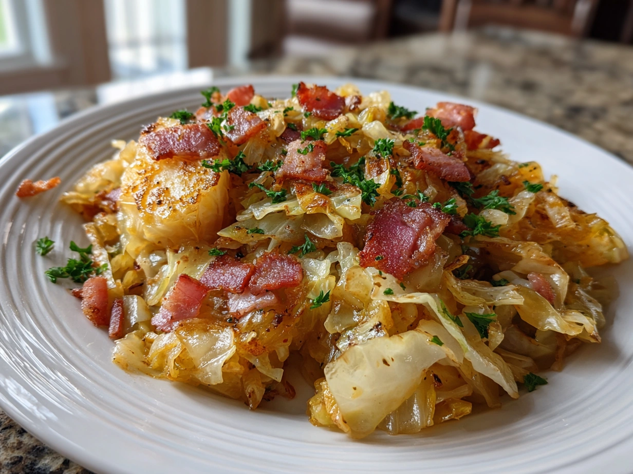 Southern Fried Cabbage is a flavorful, hearty side dish featuring tender cabbage sautéed with smoky bacon and savory seasonings, perfect for a comforting Southern meal.