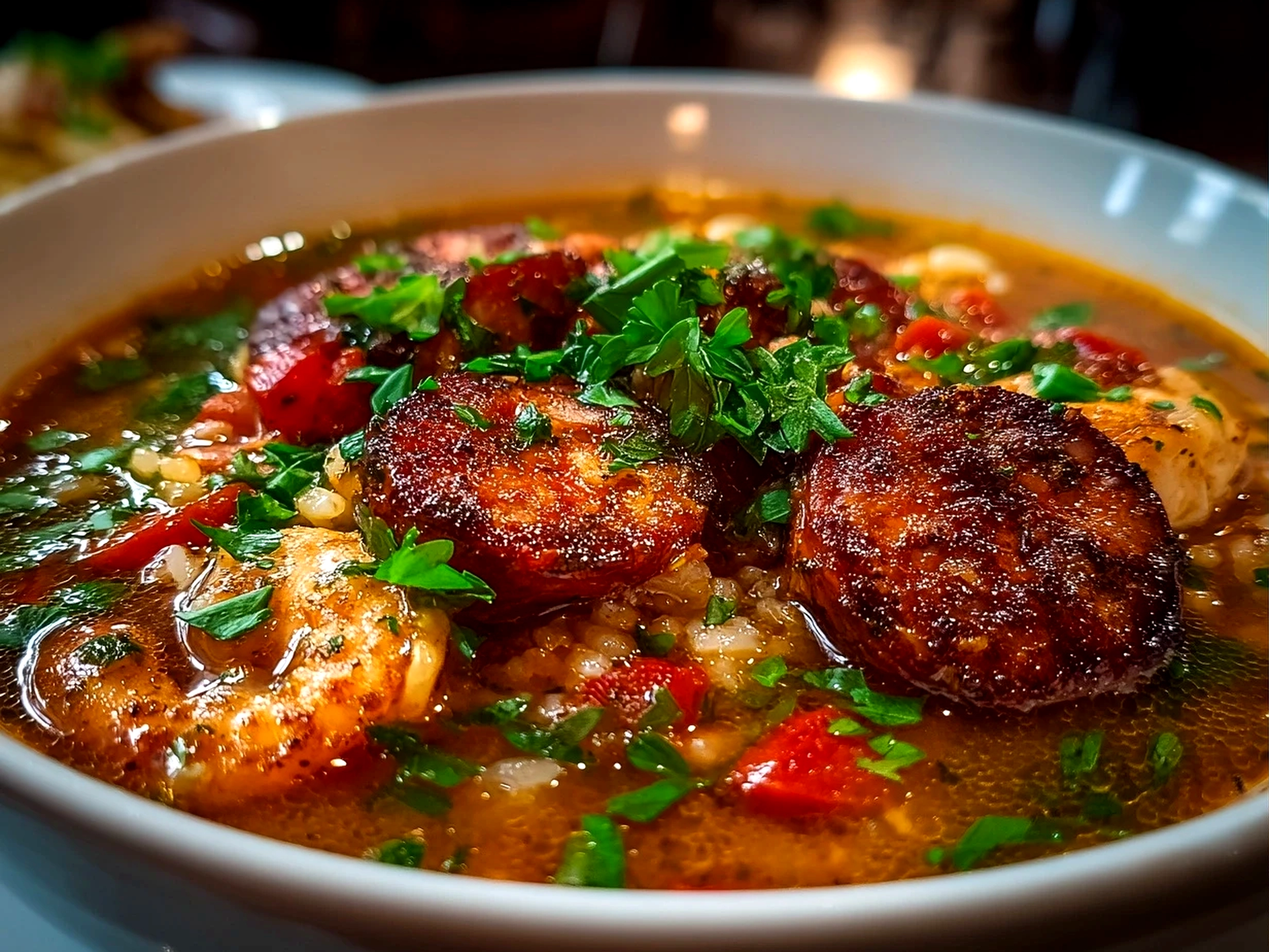 Spicy Jambalaya Soup with Andouille Sausage Chicken