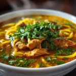 This Turmeric Ginger Chicken Noodle Soup holds a special place in my heart—not just for its bold, comforting taste but for how it has become a source of warmth and healing in my family. It’s where the familiar charm of homemade chicken noodle soup meets a gentle splash of ancient spice magic. Over the years, I’ve perfected it with a few personal touches that I can’t wait for you to try.